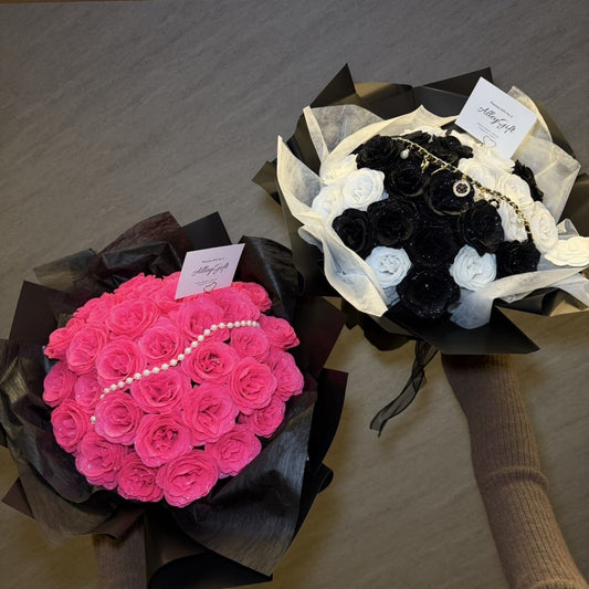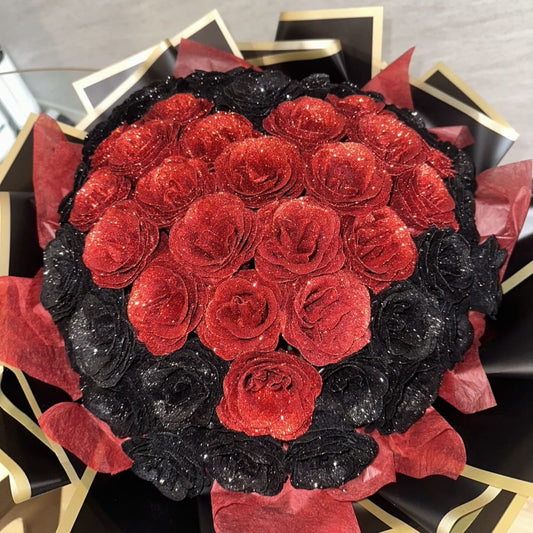 𓊆特注グリッターローズ33本𓊇 ペーパーワンホンブーケ 黒・白