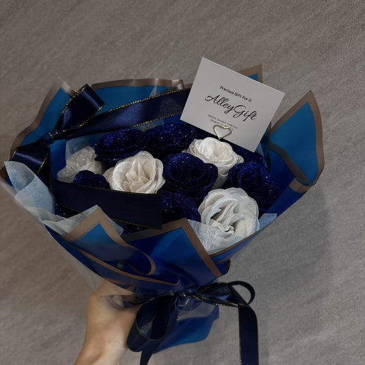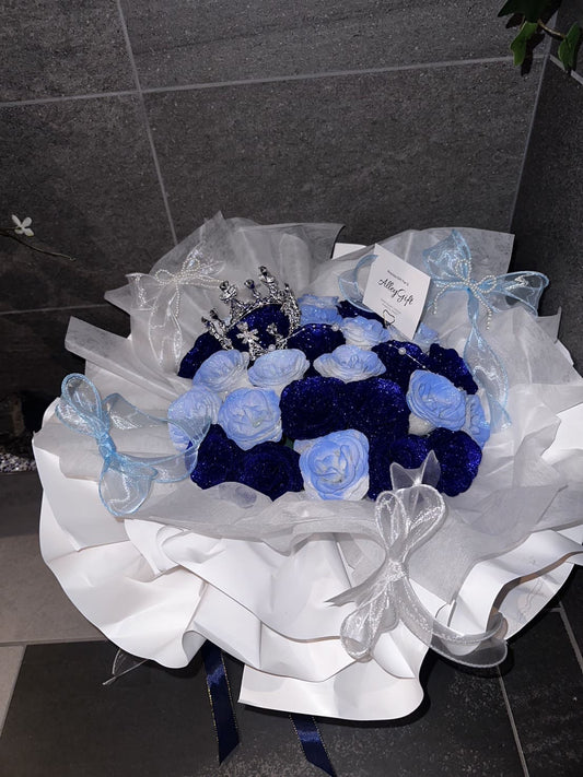 𓊆特注グリッターローズ15本𓊇 ペーパーワンホンブーケ 青×白