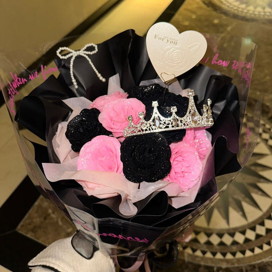 𓊆特注グリッターローズ12本𓊇 ペーパーワンホンブーケ 黒