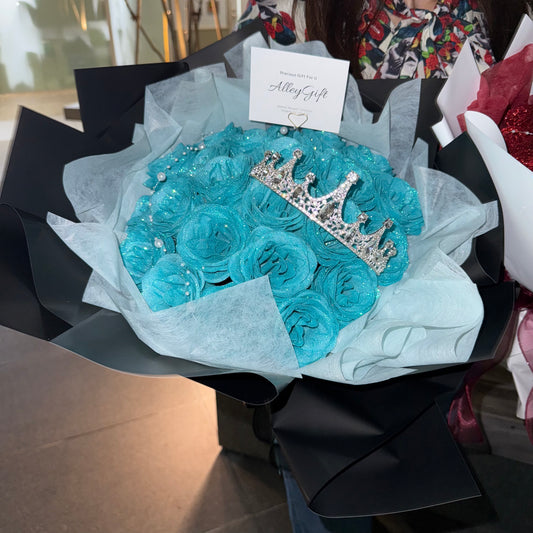 𓊆特注グリッターローズ33本𓊇 ペーパーワンホンブーケ ブルー