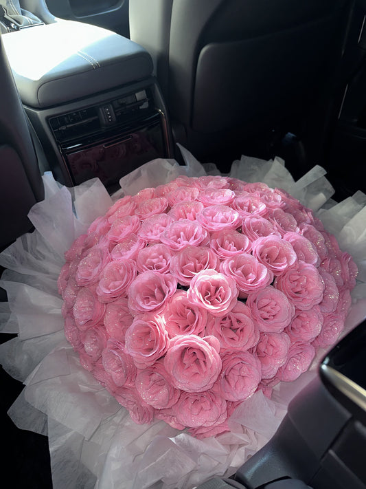 𓊆特注グリッターローズ33本𓊇 ペーパーワンホンブーケ 深めピンク